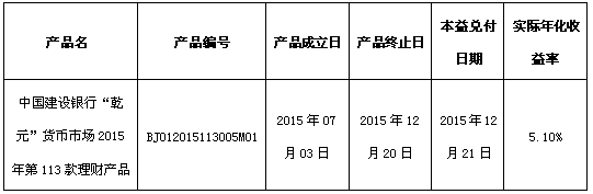根据与投资者的约定,中国建设银行北京市分行发行的下列理财产品已经到期,现将理财产品兑付及清算情况进行信息披露: