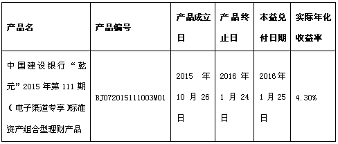 根据与投资者的约定,中国建设银行北京市分行发行的下列理财产品已经到期,现将理财产品兑付及清算情况进行信息披露: