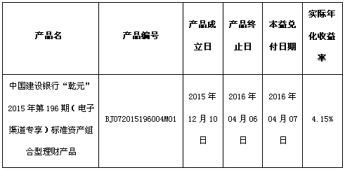 根据与投资者的约定,中国建设银行北京市分行发行的下列理财产品已经到期,现将理财产品兑付及清算情况进行信息披露: