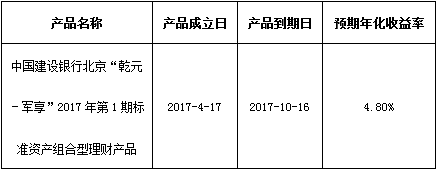 关于中国建设银行北京“乾元-军享”2017年第1期标准资产组合型理财产品成立的公告