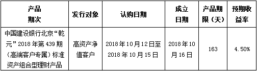 中国建设银行北京市分行定于2018年10月12日发行理财产品,现将相关发行情况公告如下: