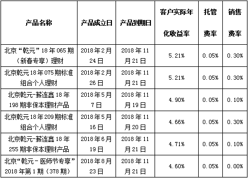 注:上述产品按照说明书中关于资产的投资类型和比例的约定进行投资,所投资非标准化债权资产已进行披露,产品运作收益超出客户实际年化收益率、托管费率及销售费率的部分将作为产品的浮动管理费用。特此公告。
