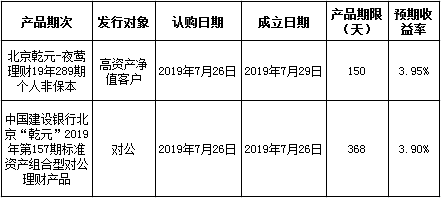中国建设银行北京市分行定于2019年7月26日发行理财产品,现将相关发行情况公告如下: