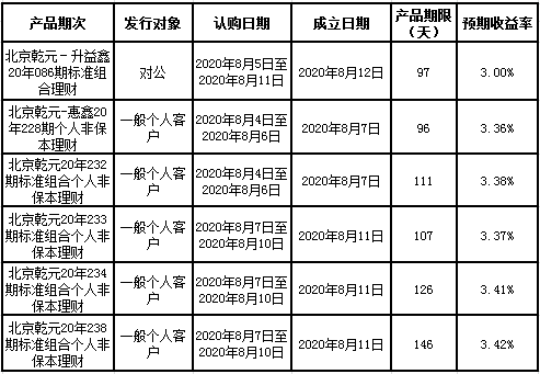 中国建设银行北京市分行定于2020年8月3日至2020年8月7日发行理财产品,现将相关发行情况公告如下: