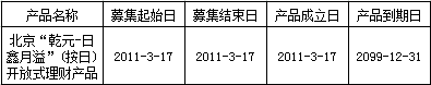 建行北京市分行“乾元-日鑫月溢”(按日)开放式资产组合型人民币理财产品(产品编号:ZH072011001000Y01)于2011年3月17日正式成立;中国建设银行北京市分行于2016年9月14日成为本产品管理人。截至报告日,本产品规模为51,709,575,077.84元。