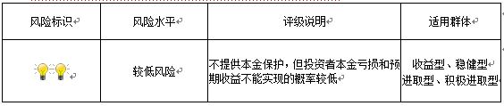 本期产品为非保本浮动收益型理财产品,不保证本金和收益,请您充分认识投资风险,谨慎投资。本期产品期限165天(中国建设银行有权对本期产品进行展期和提前终止),存续期内产品不接受申购或赎回申请。本期产品内部风险评级级别为2盏警示灯 ,风险程度属于较低风险。最不利情况下,资产组合无法回收任何本金和净收益,客户将损失全部本金。产品适合于收益型、稳健型、进取型、积极进取型客户。